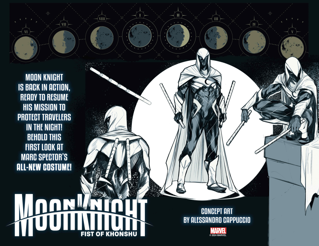 Caballero Luna murió y fue resucitado en el climax de Caza Sangrienta. Antes de retomar sus deberes de protector de los que viajan por la noche, Marvel ha preparado un estupendo número 0 que sirva de punto de entrada para nuevos lectores. El comic está guionizado por MacKay y cuenta con espectaculares dibujos de Alessandro Cappuccio con splash.pages dedicado a cada uno de los personajes y situaciones que veremos a continuación. Este número está muy chulo y creo que cumple perfectamente con su objetivo, aunque creo que es poco probable que alguien vaya a subirse al carro de una etapa que ya lleva casi 4 años.