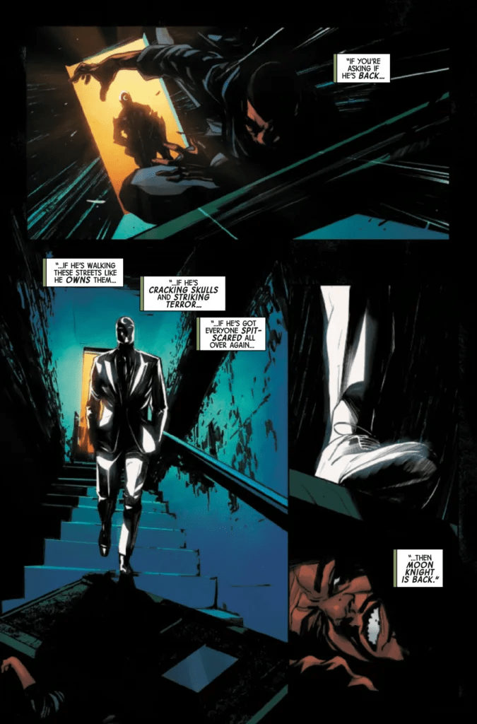¡Marc Spector ha vuelto del más allá! Como avatar y agente de Khonshu, dios egipcio de la Luna, ha muerto y resucitado en más de una ocasión. Reunido con la Misión Medianoche, que ha crecido en su ausencia, Marc se lanza directo a la lucha mientras peligrosos agentes de ambos lados de la ley atacan.