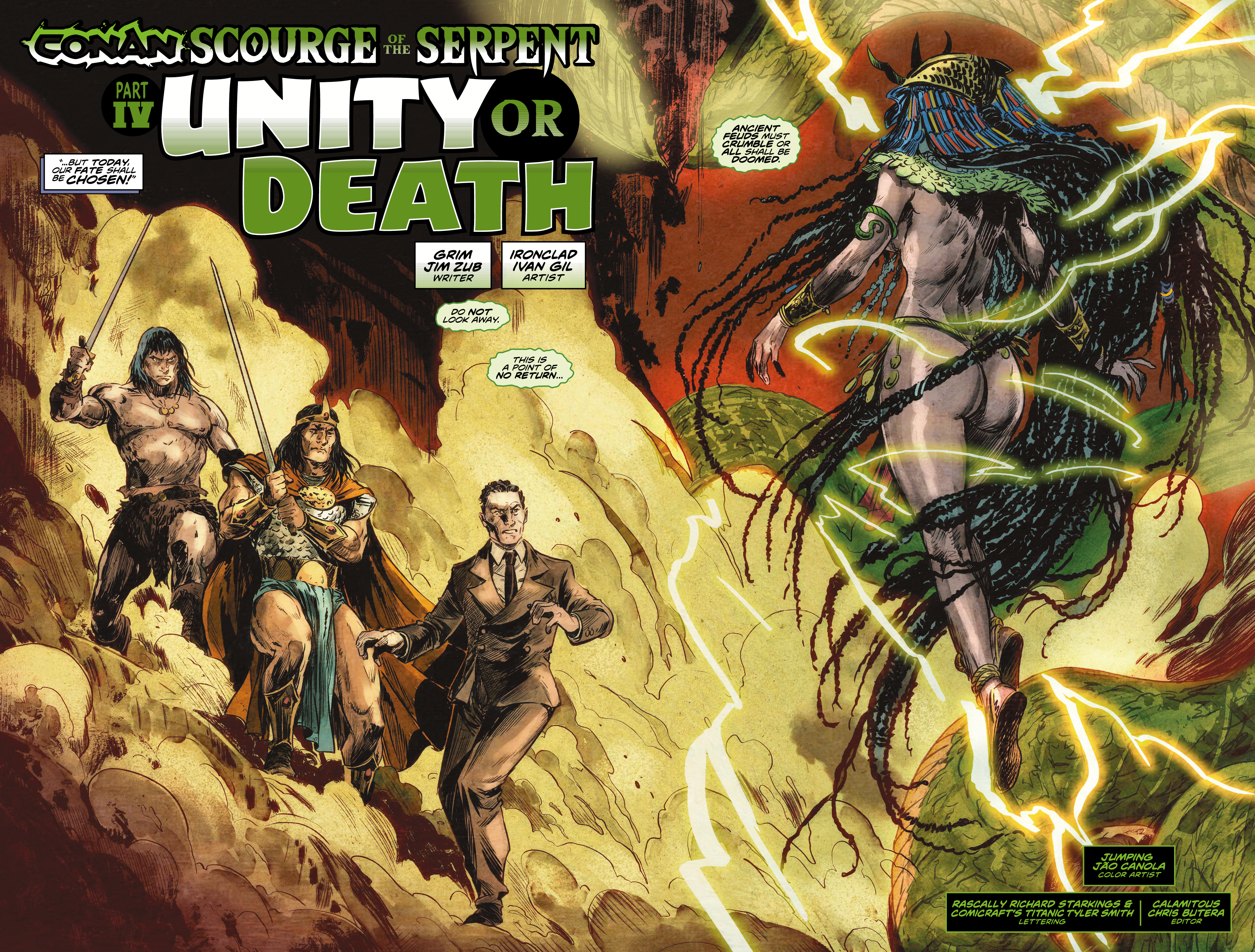Howard fue un adelantado a su tiempo, porque estableció que todas sus historias estaban ubicadas en el mismo mundo, aunque sus historias estuvieras separadas por siglos y civilizaciones. Me encanta que Jim Zub haya tomado esta sensibilidad y la haya llevado a otro nivel. Es más, la forma en que conecta todas las historias con la diosa Set en el centro, conociendo la existencia de una amenaza que es puro Terror Cósmico Lovecraftiano, me ha volado la cabeza. Creo que la lectura del cuarto número de esta miniserie va a ser una de las experiencias comiqueras más satisfactorias de este 2026. Y por si fuero todo esto poco, la sorpresa con que Zub nos deja en la última página me ha parecido una bendita maravilla.