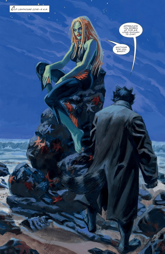 Brereton igual dibuja imágenes demasiado estáticas con muy poca fluidez entre viñetas, pero eso es porque cada una de sus imágenes pintadas podría sea una splash-page alucinante. Como digo, intelectualmente me doy cuenta que la historia está bien sin más, pero emocionalmente Brereton me tiene completamente enamorado. Tras leer esta miniserie, lo único que me pide el cuerpo es buscar los tomos recopilatorios para poder comprar los comics que no compré en los últimos 10 años.