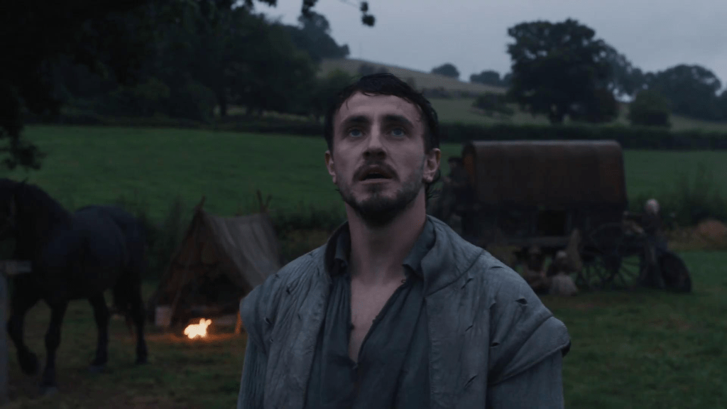 Sin embargo, puesto a decir algo menos bueno, dentro de lo mucho que me gusta, hay que reconocer que Zhao plantea un ejercicio evidente de pornografía emocional a partir del drama de Agnes, que Jessie Buckey recrea de forma magistral. Algo planteado para hacer una película «premiable» que fuera aclamada en la temporada de premios, apoyado en las interpretaciones pero también en la resignificación de hechos históricos clave para la cultura anglosajona. Que están buscando premios diría que es algo que se nota casi desde el primer fotograma en el que vemos un bosque británico. En todo caso, aunque la pornografía emocional es evidente, al menos está realizada con estilo y personalidad, por lo que no es algo que me moleste o que me baje su nota.