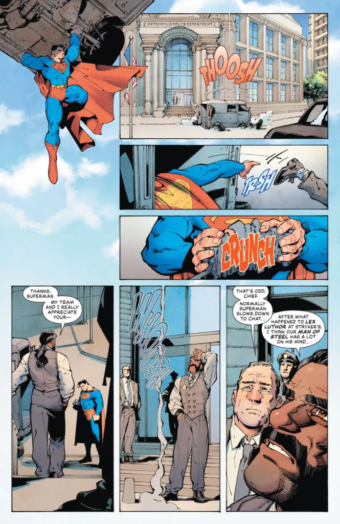 Cuando el comic avisa de los peligros de cambiar democracia por seguridad, Zdarsky obviamente plantea una crítica a la presidencia de Donald Trump y sobre todo a la sociedad que le vota. Unido a una crítica a los magnates tecnológicos (¿He oído Elon Musk?) que dominan a los políticos desde las sombras. Iba a escribir que era una crítica sutil, pero en realidad de sutil no tiene nada. Y en realidad, esta idea no es para nada original por parte de Zdarsky, a lo largo de los años hemos leído en Capitán América numerosas historias con el mismo argumento mejor contadas que esta.