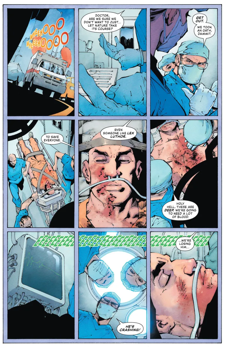 Por cada momentazo visual en el que Acuña lo clava, tenemos una decisión narrativa cogida por los pelos siendo generoso. Empezando por todo, TODO, lo relativo a la historia de James Stark. Hablaba de la sensación de haber visto cosas similares a lo visto en este comic, pero mejor en comics previos. La llegada de Hulk es un ejemplo perfecto, recordando el primer arco de The Ultimates de Mark Millar y Bryan Hitch. Lo que pudo ser un momentazo se convierte en un cliché esperable en una historia alternativa como esta.