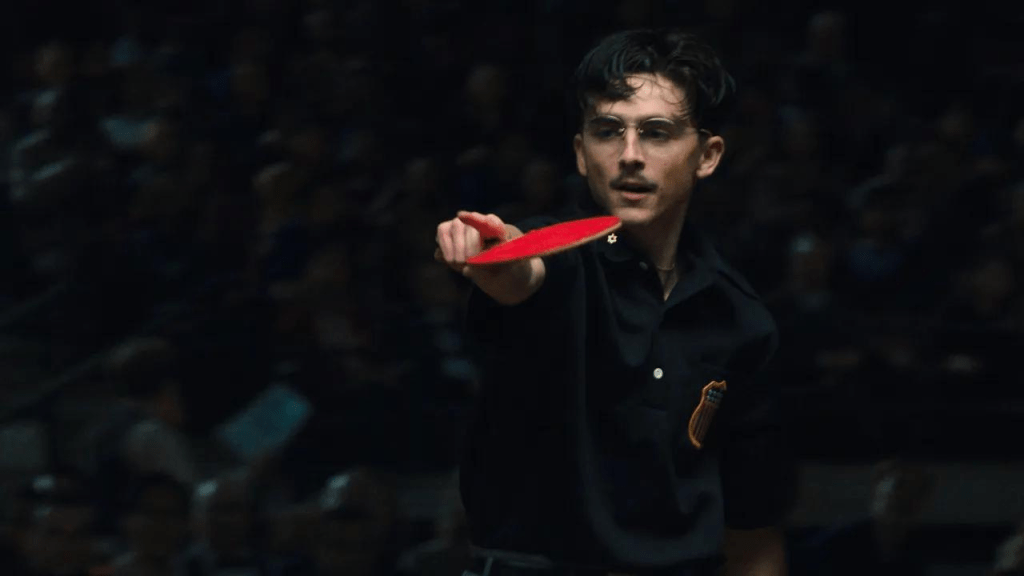 Otro elemento curioso es el uso de CGI en las partidas de ping-pong para la bola, que me ha sacado completamente de la película. Creo que hay escenas alargadas que acaban siendo ridículas al hacer que los jugadores jueguen puntos imposibles que rompen la sensación de verosimilitud de la película, antes incluso de analizar si el CGI de la bola está bien o mal. que en una película supuestamente dramática se planteen estas escenas resulta ridículo. Al menos a mi me lo pareció. Y, de nuevo, me hace pensar en las masivas críticas hacia los blockbusters por sus efectos especiales, mientras que parece que por ser una película «de autor» se le debe permitir hacer cualquier ridiculez. Y luego además hay que aguantar ridiculeces durante la promoción de la película como que Timothée ha entrenado durante años, «jugando con sus amigos entre rodajes» y ha alcanzado un nivel casi de campeón de este deporte. Si es que te tienes que reir. En realidad, el ping-pon sólo aparece en dos momentos puntuales, el primero en el campeonato en Londres y luego en el climax final en Japón. Pero son escenas que pierden todo el dramatismo que deberían tener porque me tenían pensando lo inverosímil que eran. Esto es un problema muy grande.