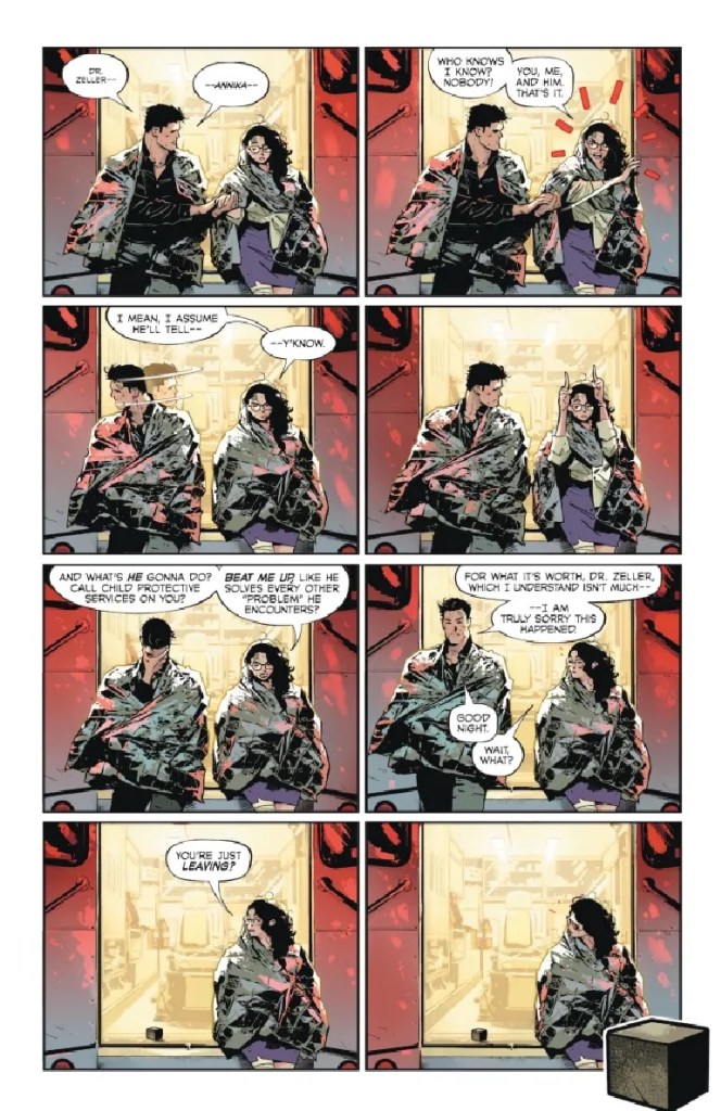 Otro tema a comentar que me hace pensar en esta grapa como la menos buena hasta ahora, es que en realidad este número no es el final de nada. De hecho, el cómic plantea una sorpresa final que confirma la naturaleza ambigua de la doctora Zegler, dejando claro que no está claro que vaya a ser una amiga de Bruce Wayne, o una enemiga de Batman.