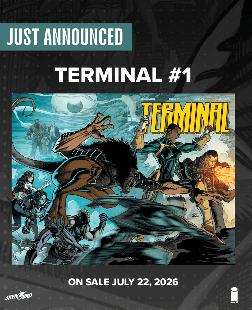 Durante la conferencia de Robert Kirkman en la reunión para profesionales ComicsPro, Skybound e Image Comics anunciaron Terminal, una nueva serie de superhéroes que se lanzará este verano con un potente equipo creativo. La serie está coescrita por Robert Kirkman y Joe Casey, con dibujos de Andy Kubert, David Finch y Arthur Adams. El primer número llegará a las tiendas de cómics el 22 de julio de 2026.