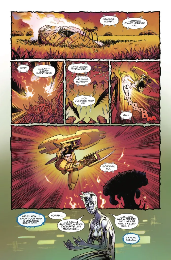 Y la nueva protagonista Kelly Koh ha resultado ser una heroína repelente que muestra lo peor de la narrativa woke actual. Una chica super capaz que derrota como si nada a todo el que se cruce en su camino, que esta enfadada con el mundo por una buena razón (en realidad, no), y tiene una fuerte opinión por las cosas que no permitirá que nadie la calle. Que el cómic termine con ella AMENAZANDO a los Vengadores y los Cuatro Fantásticos resume el nivel de repelencia que genera. Sobre todo cuando fue ella la que ha asesinado a innumerables alienígenas sin posibilidad de juicio o explicación previa cuando era comandante de ONA. Excepto en el caso de la comunidad coreana comiquera, ¿existe siquiera algo así para los comics de superhéroes?, es imposible que este personaje interese lo más mínimo a nadie.
