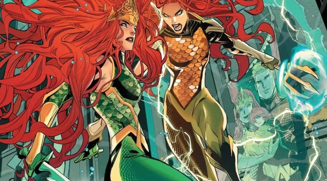 Al volver a la Tierra, enseguida quedó claro que algo raro sucedía con Andrina, la hija de Arthur y Mera. Está joven oculta un gran secreto que conecta con Mera, que resulta que está con vida, poniendo en duda todo lo que Aquaman vivió en la dimensión de Dagon. En estos dos números conoceremos la verdadera identidad de Andrina, unas revelaciones super impactantes que conectan con el reino de Xebel del que proviene Mera. Esta historia me resulta súper sorprendente e impactante, sobre todo teniendo en cuenta el shock que han supuesto las ultimas páginas del número 14 USA. La capacidad de Jeremy Adams de entretener y sorprender siendo coherente con la historia de los protagonistas me parece brillante.