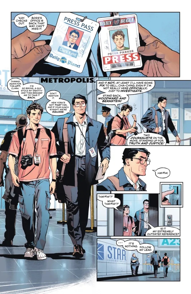 Cuando los periodistas Clark Kent y Peter Parker se ven persiguiendo la misma historia, la conspiración que descubren podría cambiar el mundo, especialmente si Brainiac y el Doctor Octopus tienen algo que decir al respecto. (¡Y apostamos a que sí!) Menos mal que nuestros intrépidos periodistas son, en secreto, Superman y el increíble Spider-Man. De la mano de los legendarios guionistas Mark Waid y Jorge Jiménez.