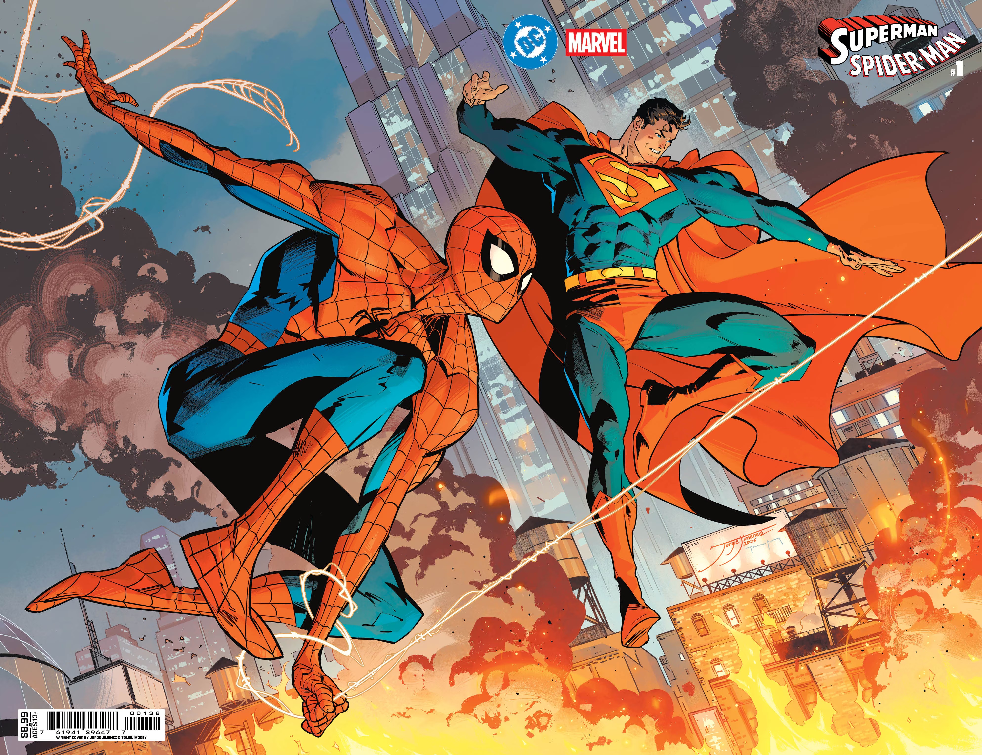 Sumada a un Waid perfecto, tenemos a otra de las super estrellas de la DC actual, el dibujante español Jorge Jiménez. De Jiménez ya tenía claro que es un artista todoterreno capaz de dibujar cualquier cosa. Tras leer este especial, sigo pensando que Batman se ajusta más a sus puntos fuertes, pero lo cierto es que ha dibujado a unos Superman y Spider-Man super canónicos que han sido una delicia. Su Peter Parker y su Clark Kent son atemporales y perfectos, y cuando llega el momento de la acción, todo está contado de forma increíble.