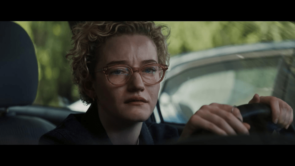 La película empieza con una voz de niña que dice nos va a contar la historia de la película. Esto es algo que recuerda a la estructura de los cuentos infantiles. Y más concretamente, a los cuentos infantiles originales en los que no abundaban los finales felices. A partir de ahí, uno de los principales éxitos de Zach Cregger es crear una atmósfera de tensión malsana en una comunidad que no sabe qué ha pasado en realidad y por tanto no puede empezar a sanar. Aparte de los propios niños desaparecidos, la primera víctima de la desaparición es Justine, la maestra de los niños interpretada estupendamente por Julia Garner. Todo el pueblo la ve responsable y casi culpable de la desaparición, a pesar de ser inocente. La paranoia del pueblo y el acoso al que se ve sometida es protagonista de la primera parte de la película. Weapons no es una película de terror de jump-scares, aunque alguno hay, sino de creación de tensión, y en esa parte la película es un éxito absoluto.