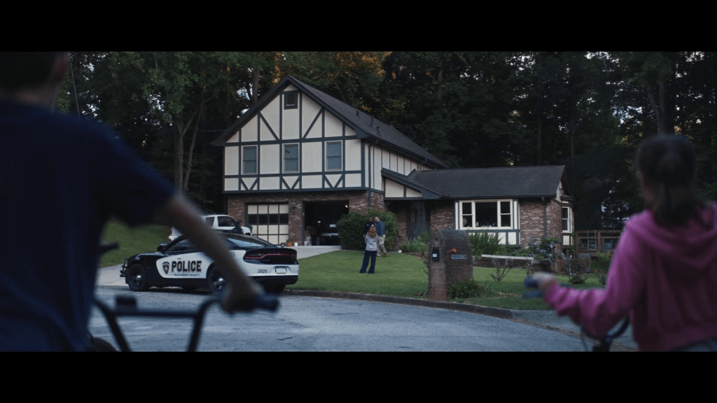 El siguiente éxito de Cregger está en la estructura de su guion, al plantear una historia fragmentada mientras conocemos la historia desde el punto de vista de varios vecinos del pueblo. Primero Justine, luego Paul, un agente de policía amigo de Justine, Archer, padre de uno de los desaparecidos, Marcus, el director del colegio, el drogadicto sin hogar James y así sucesivamente. Una narrativa en la que cada punto de vista añade un poco más información y misterio, hasta que lleguemos al climax en el que todo se revelará. Esta estructura me parece que está muy chula, partiendo por ejemplo que vamos a ver el mismo suceso desde el punto de vista de varios personajes, lo que implica un grado de planificación muy interesante. Aunque luego entraré a comentar elementos clave de la trama menos buenos en la parte con spoilers, tengo que valorar muy positivamente la parte de originalidad que sin duda esta estructura ofrece al espectador.