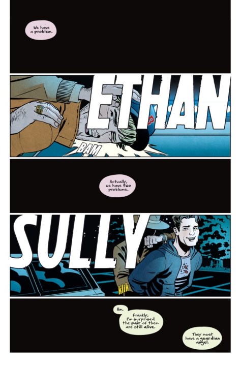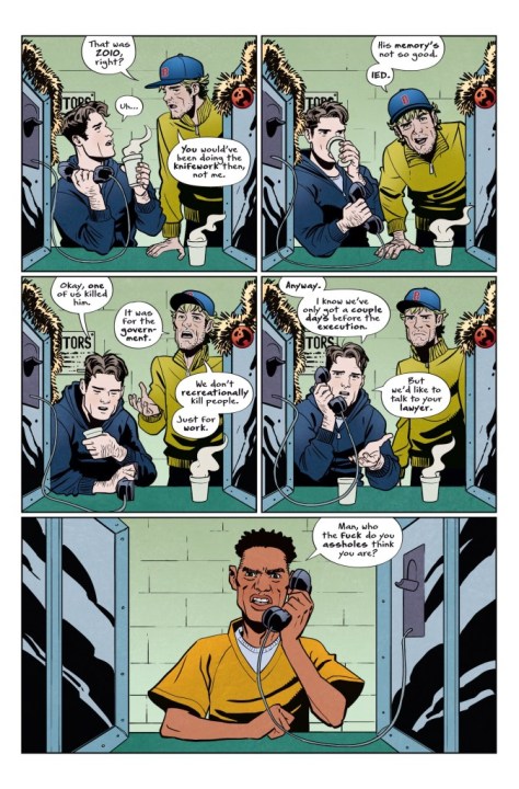 Sin embargo, globalmente este primer número de Bad Karma me ha parecido super correcto en todo, pero sin nada que me haya llamado especialmente la atención. Teniendo en cuenta la saturación de oferta comiquera que hay ahora mismo, correcto no es suficiente. El problema que le veo es que De Campi plantea este comic no como una historia serializada sino como una novela gráfica que logísticamente ha tenido que dividir en números individuales. Esto provoca que literalmente en este primer número en lo relativo a la trama no pasa nada importante. Obviamente, está presentando a los personajes para que nos importen cuando la cosa empiece a ponerse fea, pero le hubiera pedido algo más a la historia y, al menos, un buen cliffhanger que me hubiera dejado con ganas de comprar el siguiente número.