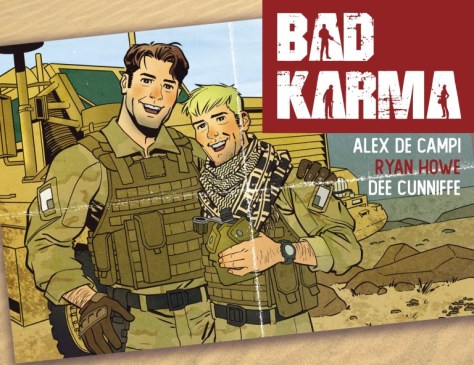 Alex de Campi se ha inspirado para crear Bad Karma en personas del mundo militar de su entorno, así como de las relaciones masculinas de amistad. De Campi comenta que esta es una larga novela gráfica de casi trescientas páginas y, aunque este comienzo ha empezado de forma lenta centrándose en los dos protagonistas, Ethan y Sully, plantea una historia con altas dosis de acción. Además, explica que está muy orgullosa de Cheryl, ya que no va a ser ni un interés romántico, ni la chica a la que salvar, ni una tía dura, por lo que cree que le va a encantar a los lectores, especialmente entre el público femenino.