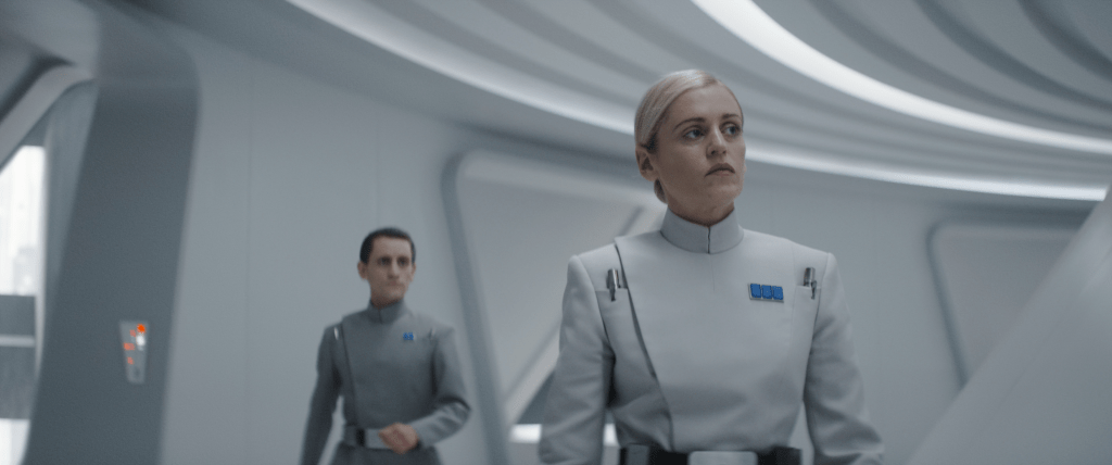 Pero estas partes no son las realmente malas. Lo realmente penoso viene de las tramas de los imperiales, y sobre todo de una Mon Mothma absolutamente ridícula. Por el lado de los imperiales, el Director Krennic convoca un grupo de trabajo para decidir como cometer un genocidio en un planeta que tiene unos minerales raros que necesitan para la construcción de la Estrella de la Muerte. La escena le sirve a Gilroy para mostrar, aparte de lo malos que son los imperiales, cómo el Imperio se va a servir de fake-news para ocultar el genocidio. Y nos da una escena realmente ridícula de gente hablando para mostrarnos algo que ya sabemos, que el imperio es malo. No el Emperador y Vader, todos los integrantes de su organigrama. Todos hombres blancos, excepto la oficial de inteligencia Dedra Meero, a la que conocimos en la primera temporada. Una oficial que es la única mujer, pero también es blanca.