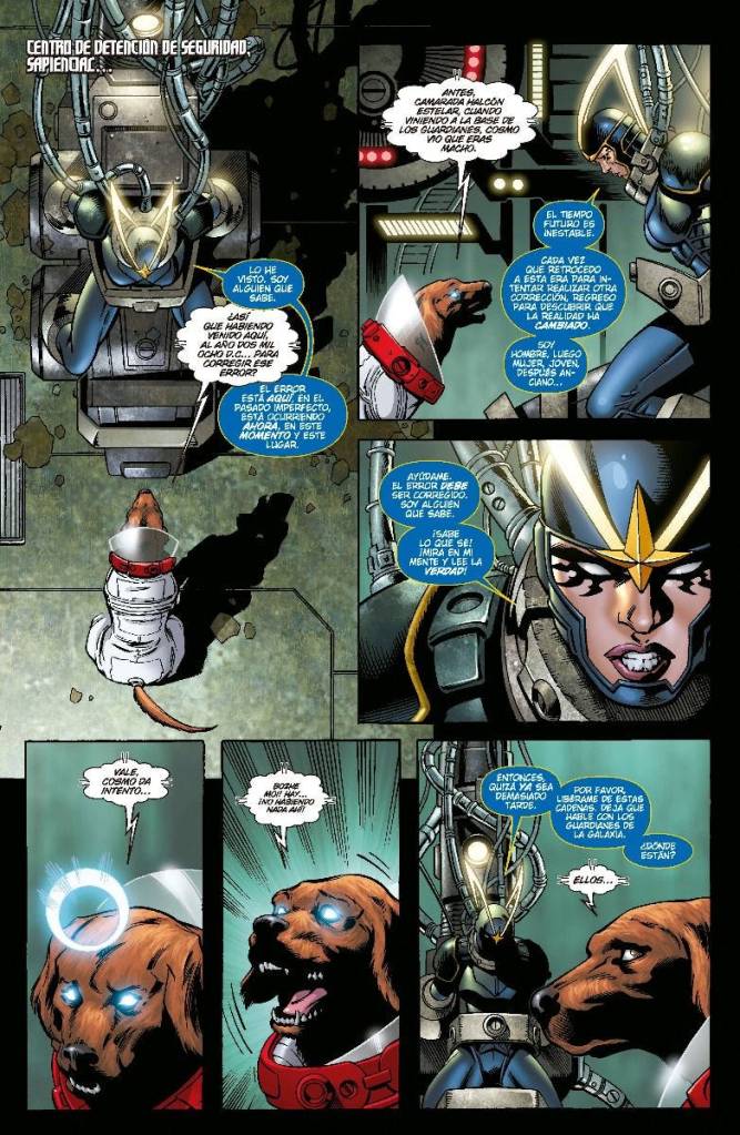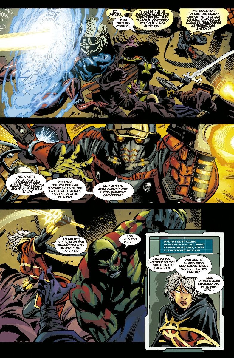 Se nota el amplio conocimiento que estos escritores tienen del Universo Marvel, porque usan con gran habilidad a un montón de personajes, con un montón de sorpresas tanto en el lado de los héroes como de los villanos. Además, que hayan varias acciones simultáneas me parece otro de los aciertos de este comic, que está construido desde la acción y va dejando pistas de los próximos sucesos que afectarán a la vertiente galáctica del Universo Marvel. Quizá la caracterización es la parte menos buena, pero todos consiguen tener una voz más o menos reconocible, lo cual también tiene mérito en un comic tan coral como es éste.