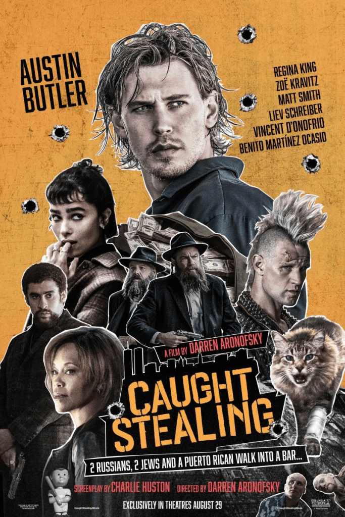 El caso es que la película es bastante entretenida gracias a un guion de Charlie Huston en la que adapta su propia novela Caught stealing. Una historia de género negro de perdedores en la que la mayoría de situaciones suceden por pura casualidad. En positivo, Aronofsky plantea algunos planazos super chulos, como por ejemplo un plano con dron en el que Hank (Austin Butler) intenta acceder a su casa a través de la escalera de incendios. O en una persecución en la que Hank intenta escapar de dos gangsters judíos super peligrosos.