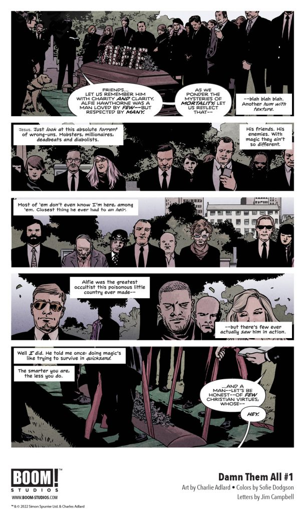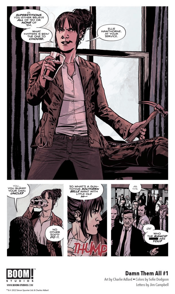 Damn them all, el comic de Simon Spurrier y Charlie Adlard, con color de Sofie Dogson, publicado por Boom Studios, termina en su segundo volumen. Un comic de temática criminal sobrenatural con el que no conecté en el primer volumen y que proponía una renovación del concepto de John Constantine y en general los antihéroes británicos que nos defienden frente a las fuerzas sobrenaturales.