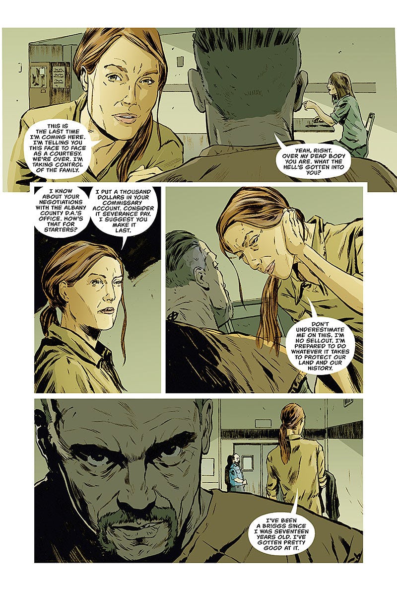 Globalmente me ha parecido un buen tomo con historias que sirven para ampliar el mundo de Lazarus y darnos mayor perspectiva de la gente que lo puebla. Así tenemos desde historias de una familia de disidentes, de una periodista que lucha por contar la verdad en un mundo en el que eso puede costarte mucho más que tu reputación, o el origen del Dragón, el Lazarus de la familia Vassalovka que ha cometido innumerables atrocidades y que es el mayor enemigo de la protagonista de la serie, Forever Carlyle.
