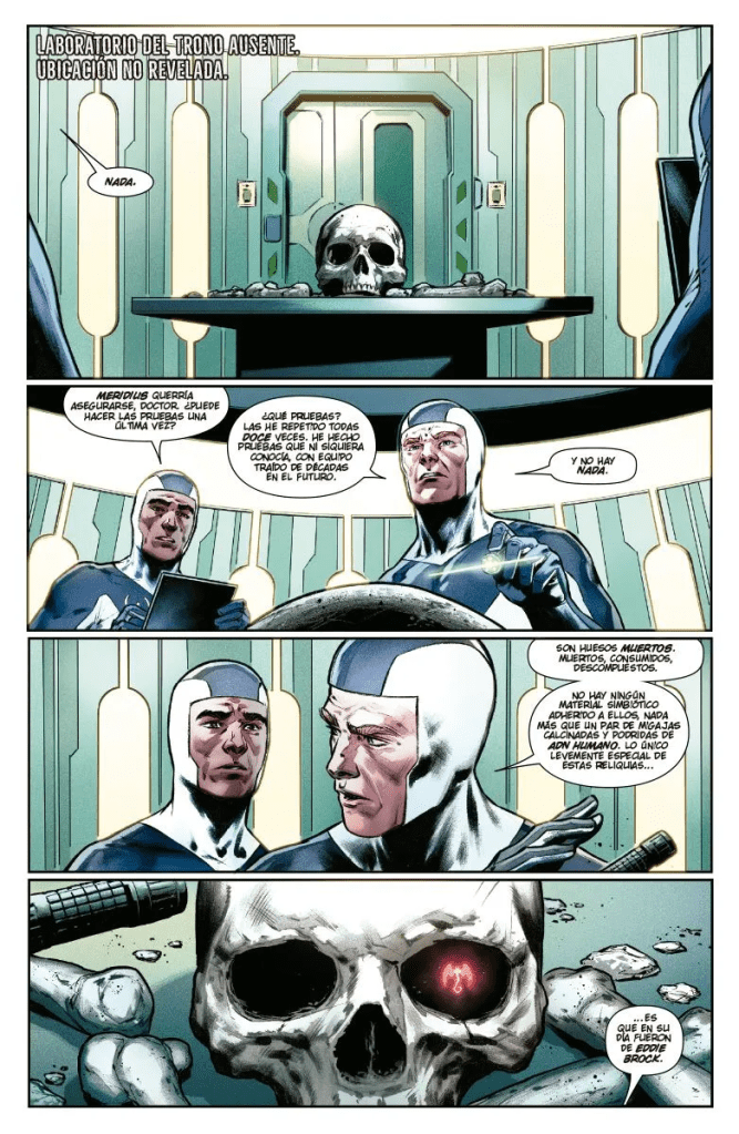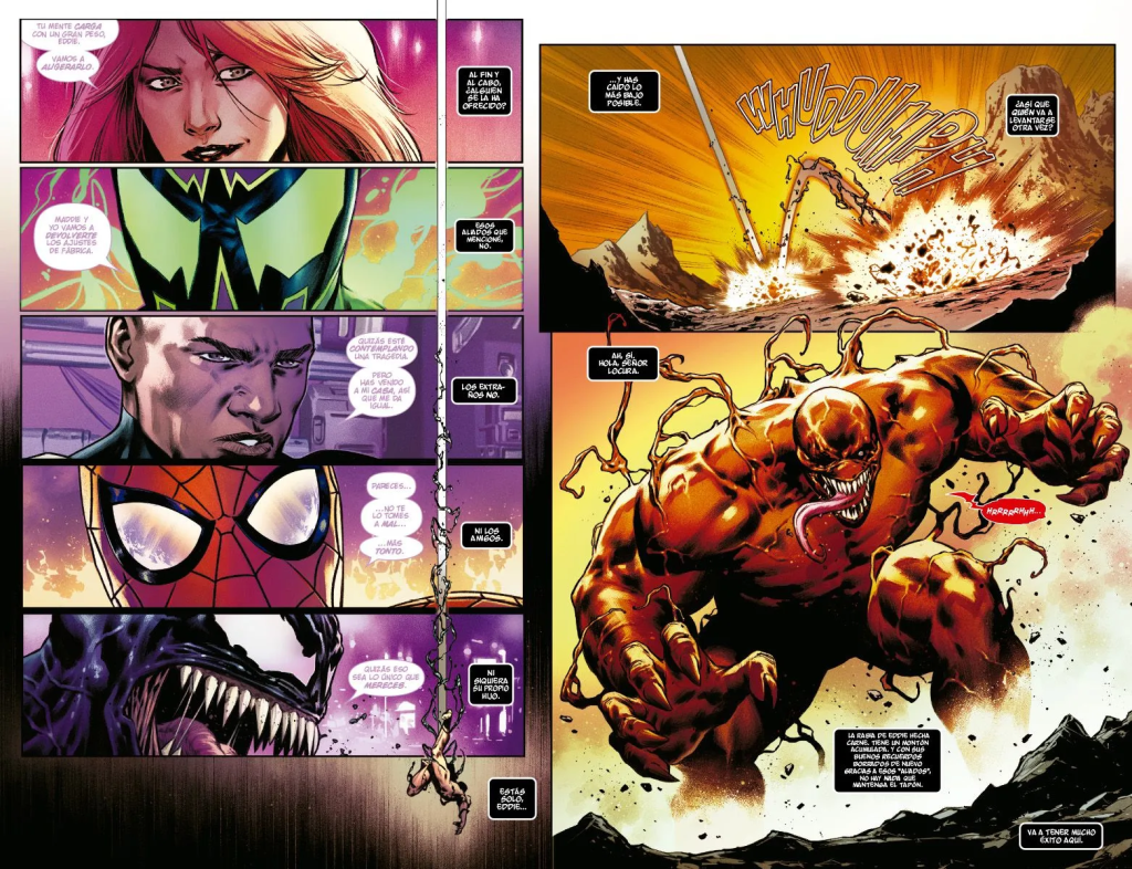 Esta grapa termina con un WTF? muy gordo. Algo que puede ser coherente con lo que le ha pasado a Eddie Brock a lo largo de toda esta larga etapa, que hace que tengamos que preguntar ¿Si le pasó a Eddie, por qué no a Dylan también? Pero que no se puede valorar hasta que veamos que uso tiene Ewing para ese giro argumental. No se si es algo bueno, pero llamativo seguro si lo ha sido.