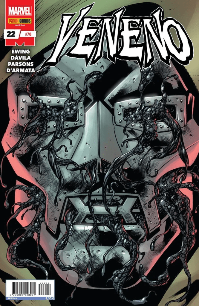 Otro elemento a comentar es la edición trimestral de Panini. El próximo número con la primera parte del evento no se publicará hasta ENERO de 2025. Y aparte de que me saltara el número anterior guionizado por Grønbekk, estpy empezando a sentir algo que tenía claro que iba a suceder, y es que no poder leer al personaje mensualmente provoca una desconexión con Veneno. Incluso reconociendo que los números dibujados por Ferreyra me han gustado bastante. Y esto no es un tema sólo de Veneno. Compré al mismo tiempo que esta grapa la de Motorista Fantasma, y aún no la he leído porque no encuentro el momento de la pereza y las pocas ganas que me genera el comic de Benjamin Percy. La desconexión con todo aquello que no se lee mensualmente es evidente. Y si le sumamos que la lectura está «bien, sin más», podemos estar en el inicio del abandono de la colección en pocos meses.