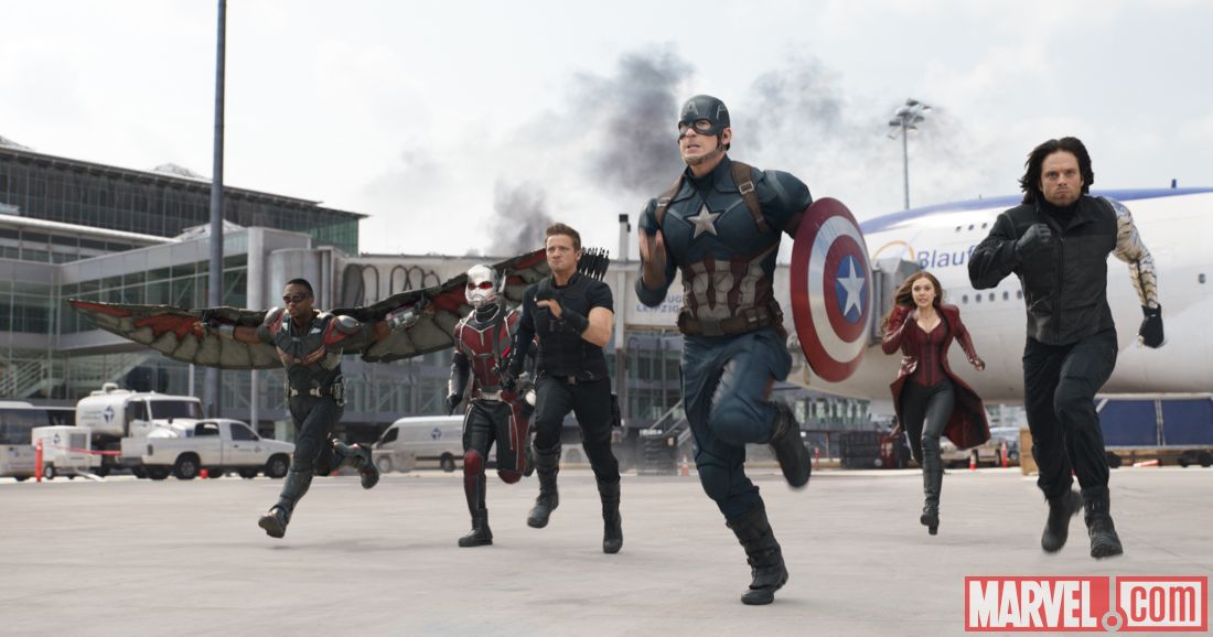 Equipo de Capitán América (Chris Evans): Formado por Halcón (Anthony Mackie), Winter Soldier / Bucky Barnes (Sebastian Stan), Wanda Maximoff (Elizabeth Olsen), Ojo de Halcón (jeremmy Renner) y Ant-Man (Paul Rudd).