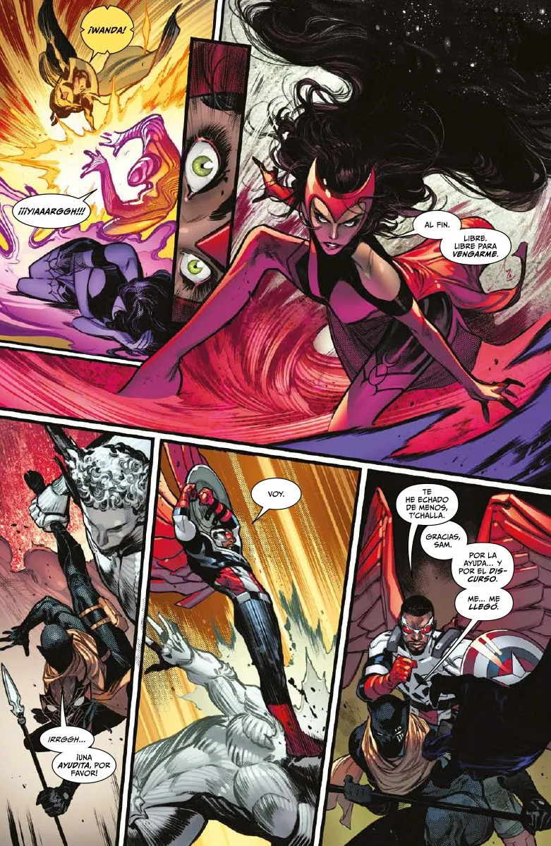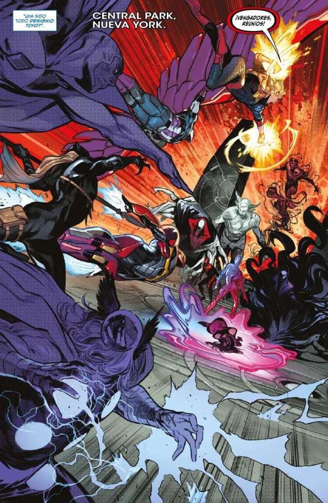 En el climax final tenemos una acción a varias bandas. Por un lado, Clea y Stephen Extraño en Latveria tienen que convencer a Victor Von Muerte para que les ayude a disipar la Fuerza Oscura que ha cubierto el planeta de oscuridad. El precio, que Stephen renuncie a su puesto como Hechicero Supremo de la Tierra y le de ese título y las habilidades que conllevan a Muerte. Brielle Brooks, la hija de Blade, debe llegar al combate final junto a Drácula y Miles Morales (Spiderman) a tiempo para derrotar a Varnae, ya que ella es la llave para acabar con él. Y por supuesto, tenemos el contraataque de Los Vengadores contra Varnae y su Aquelarre Sangriento. Tengo que quitarme el sombrero por todo lo que pasa en esta última grapa en apenas 30 páginas. La acción es espectacular, las apuestas no dejan de crecer, Varnae parece invencible y todas las piezas acaban ensamblando un puzzle perfecto que me ha dado un entretenimiento como hacía tiempo no disfrutaba en un comic Marvel.