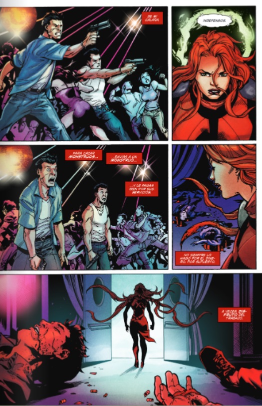 No me parecería del todo mal que Costa se encargara de dibujar un arco completo y hubiera un fill-in puntual en algún momento. Sin embargo, en este primer tomo tenemos dos dibujantes extras además de él, y me parece que no es una buena noticia que un comic de Image que se supone de creación propia empiece a copiar los peores vicios de Marvel o DC. De hecho, es que el quinto número que cierra el primer arco ni siquiera está dibujado por Costa, sino por Eduardo Ferigato, al que encuentro correcto pero inferior a Costa (o quizá es que ya me acostumbré a su estilo y ver a otro dibujante queda algo raro). Y no se el motivo exacto de estos cambios de dibujantes, igual estuvo enfermo y fue físicamente imposible dibujar el comic. Pero uno de los hechos diferenciales en los que los comics de creación propia (de Image y otros) superar los mainstream de las Dos Grandes es precisamente la potencia que da tener una unidad gráfica a lo largo de toda la serie. Si esto se pierde al final será un comic mejor o peor pero con los mismos vicios. En mi opinión, lo ideal sería que Radiant Black se tomara un mes de descanso entre arcos para que todos los creativos recarguen las pilas.