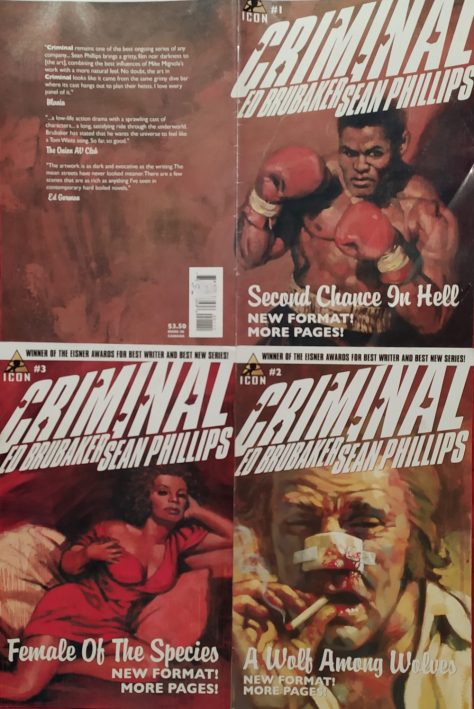 Criminal transmitía que era un comic muy especial desde el minuto uno. Además de la fantástica historia de Brubaker y las maravillosas portadas y el arte de Phillips con color de Van Staples, cada número venía con estupendos análisis de clásicos del noir a modo de extras, algo aún hoy único en el mundo del comic.