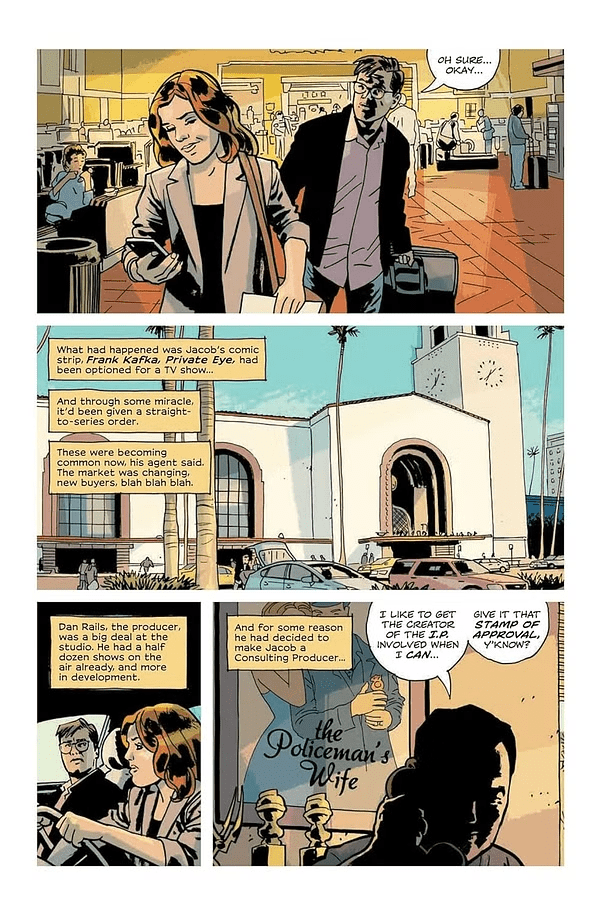 La historia empieza en el pasado de Jacob Kurtz cuando se muda a Hollywood para trabajar en la adaptación de su tira cómica Frank Kafka, Detective Privado. Esto permite a Brubaker contar otra historia sobre el mundo de la industria del cine, algo que ha estado presente en varios trabajos previos. La historia irá saltando de momento temporal y de protagonista, alternando a Jacob y a Angie. Es curioso que el personaje más popular, Tracy Lawless no aparezca hasta el último tercio. Pero eso permite a Brubaker extenderse en Jacob y Angie, que son más interesantes al tener problemas de todo tipo.