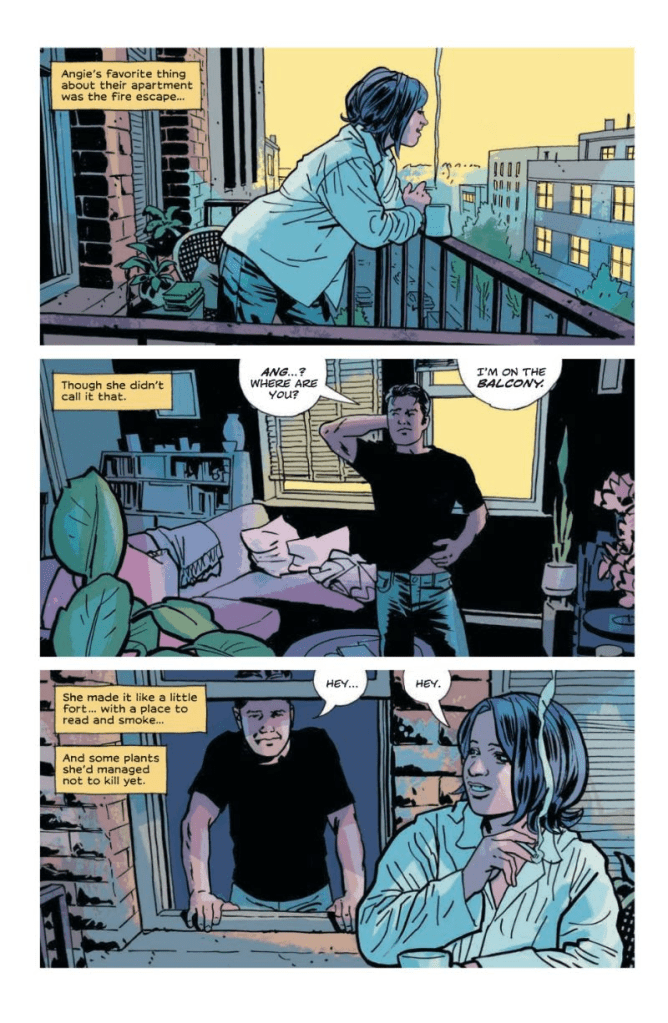 Otro detalle chulo es que Jacob es el autor de la tira Frank Kafka, P.I. del periódico, que ya hemos visto en comics anteriores. Ver cómo Frank, el personaje de su tira cómica le habla y se le aparece en la vida real, con la apariencia cartoon del periódico para que no quede duda de que es algo que Jacob está imaginando, nos sirve para intuir que algo dentro de Jacob no acaba de funcionar bien. Además, los monólogos en primera persona de Jacob y la posibilidad de que no sea un narrador “imparcial” también ofrecen detalles que indican que Brubaker sigue buscando contar historias de género negro pero desde vertientes diferenciadas que no puedan ser vistas como más de lo mismo.