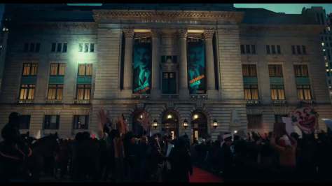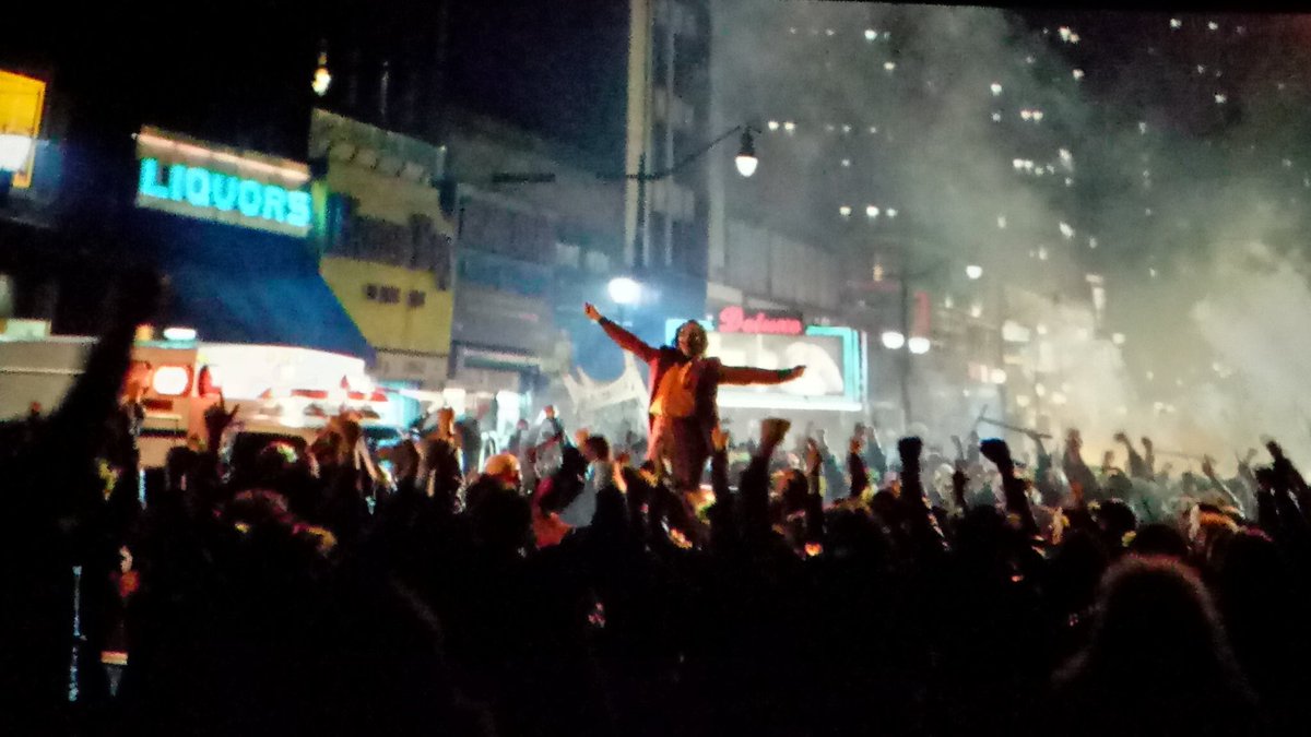 Tan empeñado está Todd Phillips en mostrarnos al CAPITALISMO y la SOCIEDAD como los grandes villanos de este mundo sin empatía que crea situaciones extremas ridículas, como que tras ser apalizado Arthur por unos chavales y estar lleno de moratones, su jefe ponga en duda que le han atracado y exija que devuelva el cartel de madera con el que ha sido agredido, descontándoselo del sueldo. O que el asesinato aleatorio de 3 personas en el metro espontáneamente provoque la aparición de un movimiento de “Muerte al rico”. Absurdo no llega a calificar lo tonto que es todo.