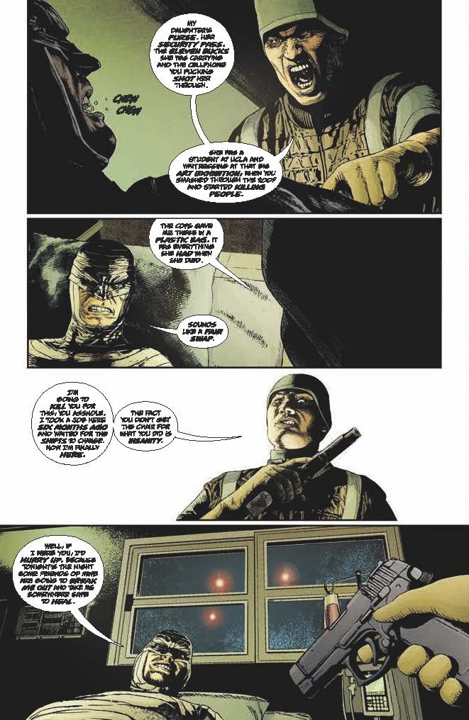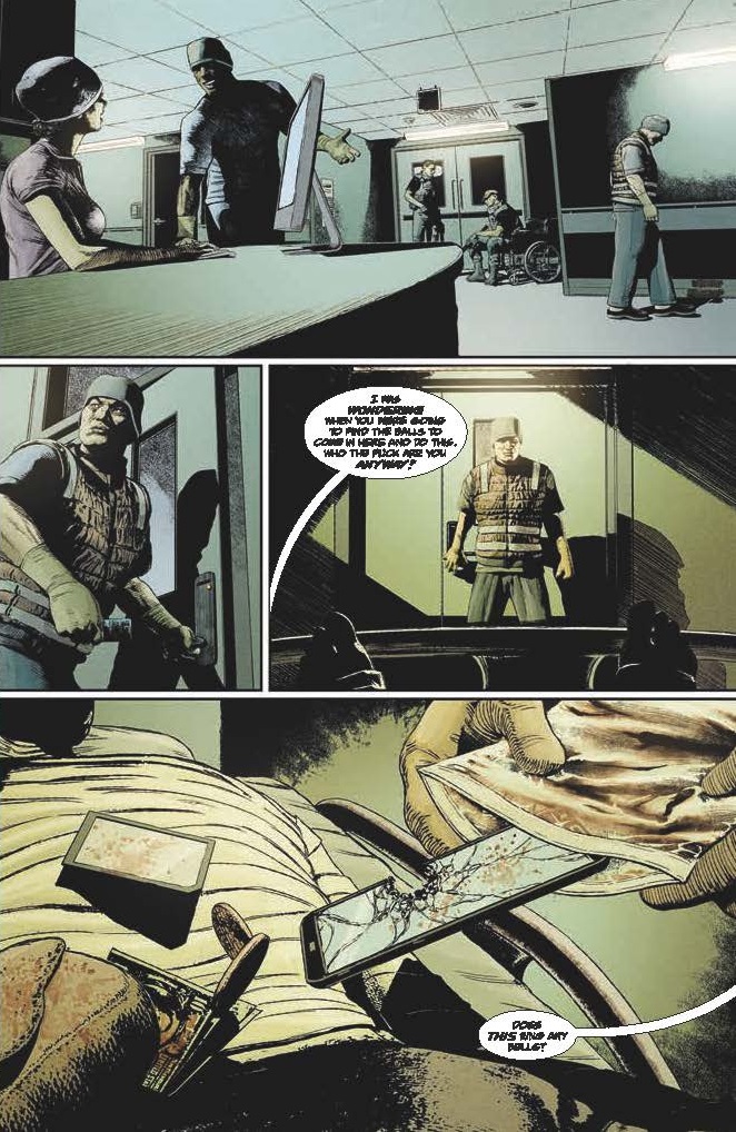 En la parte artística tenemos al dibujante italiano Valerio Giangiordano, que viene acompañado por el colorista Lee Loughridge. Y dentro que Giangiordano no está mal, no he llegado a conectar del todo con su estilo de dibujo. Aunque no estoy seguro, diría que el artista italiano debe trabajar con programas de dibujo en los que utiliza modelos digitales y referencias visuales reales. Y este exceso de «realismo» acaba provocando que las imágenes con las que cuenta la historia me resultan demasiado estáticas. Es por esto que quizá las imágenes no consiguen ser todo lo espectaculares e impactantes que en realidad el medio comiquero le permitiría para contar la historia de la mejor manera posible.