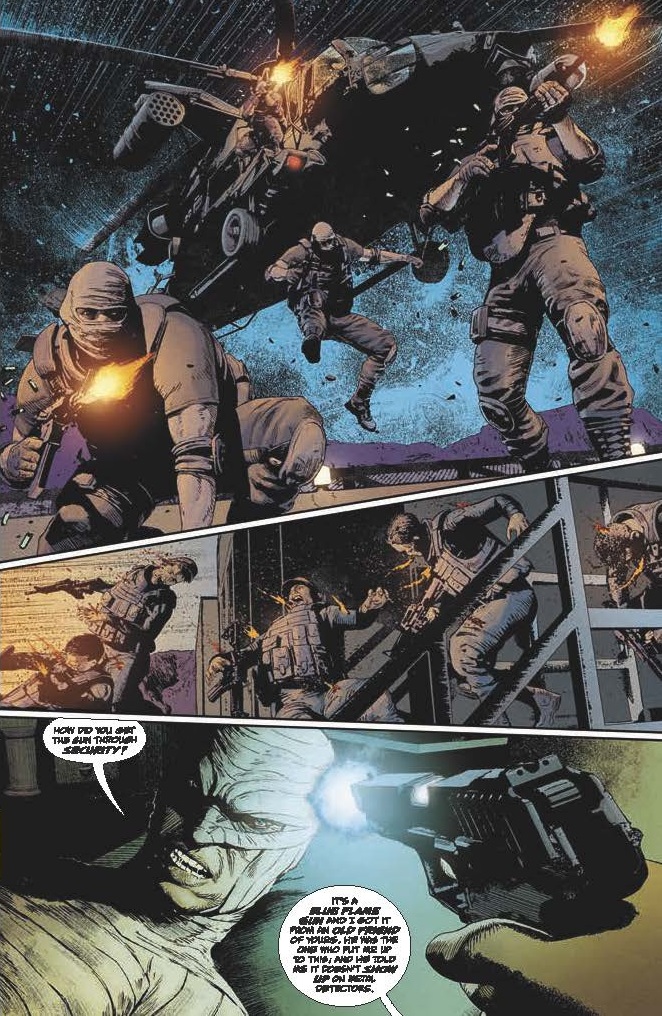 Aunque el título Rogues´ Gallery alude casi más a Flash que a Batman, Millar lo tiene claro y bebe completamente de los mitos del Hombre Murciélago para darles la vuelta de la forma más violenta y over-the-top imaginable. Empezando con una resucitación gracias a un Ra´s Al-Ghul pasado por el tamiz over-the-top de Millar, que realiza el milagro pero que exigirá un pago muy elevado y que no tiene nada que ver con el dinero.