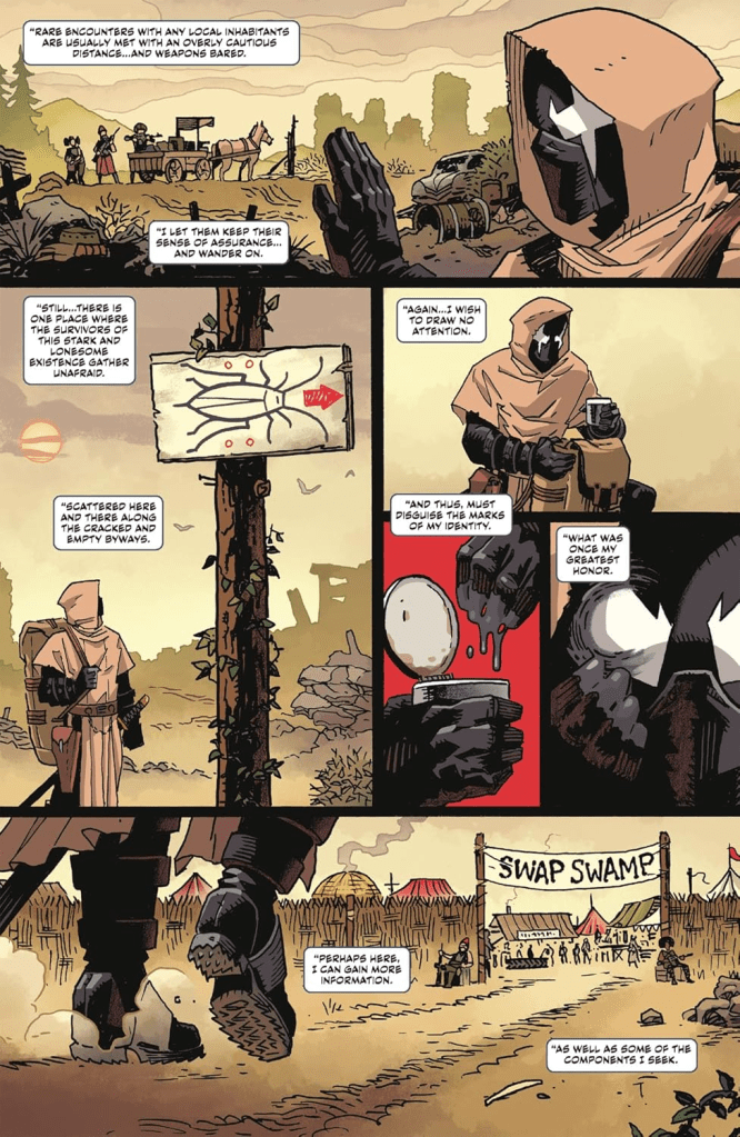 Si tengo que ponerle un pero a este comic sería que como es habitual en Snyder, el comic está saturado de texto, con la narración en primera persona que hace Lam. Hay tanto texto descriptivo explicando el mundo en que tienen lugar estas aventuras que en varios momentos más que un comic parece que estemos en un historia ilustrada. Tener a un fuera de serie como Capullo y que esté constreñido durante una parte importante del comic me parece, más que un problema, una pena. Sobre todo porque cuanto por fin puede desatarse con las escenas de acción, está es sangrienta y super molona.