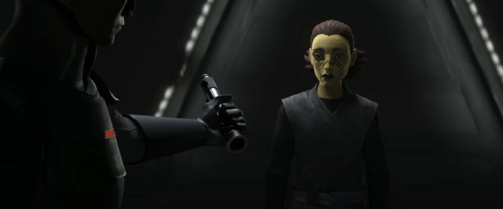 Tras la emocionante presentación de Ezra la semana pasada, en este episodio asistiremos a la reunión de Ahsoka con Sabine y Ezra, que nos da otro momento muy chulo. Que Ahsoka no recrimine a Sabine su traición alegre como está de ver que Ezra está vivo es un detalle muy chulo del episodio, mostrando que Ahsoka es más comprensiva y menos dura de lo que parecía viendo los primeros episodios. Por cierto, Ahosoka vuelve a tener una nueva escena junto a Anakin Skywalker en la que su maestro le da un último consejo antes de convertirse en Darth Vader. Esta escena, como antes la de C3Po, veo clarísimo que en parte está planteada para hacer flipar a los fans, pero a mi me dejó frío.