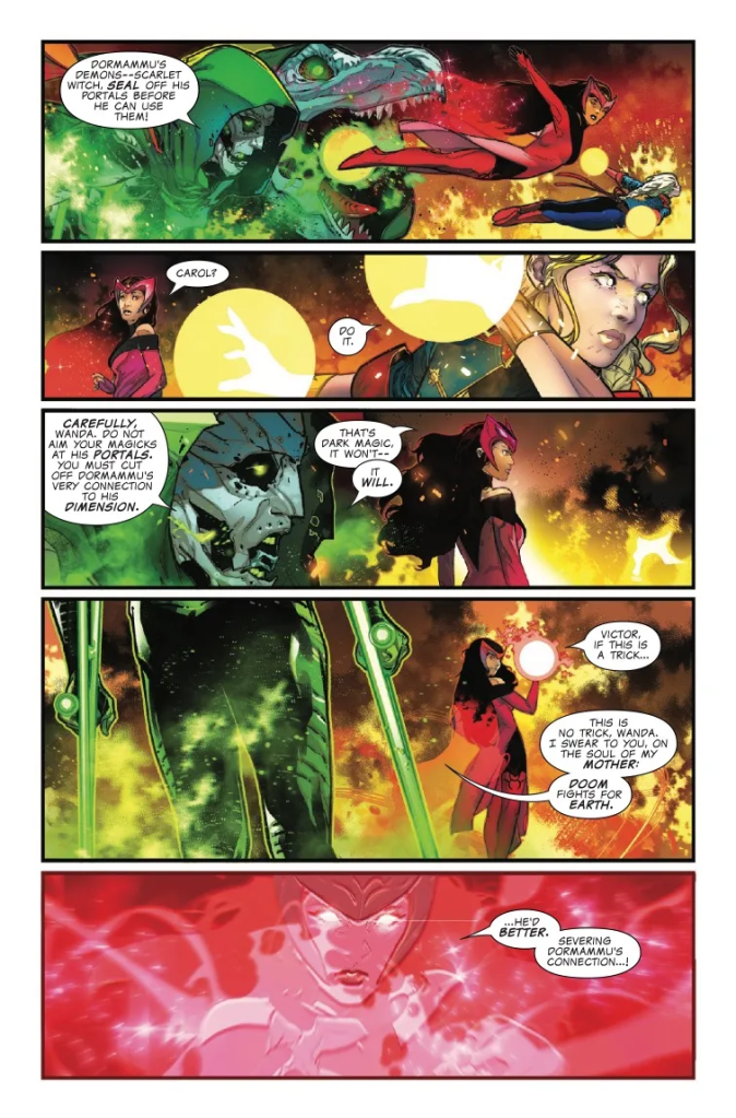 Un mundo bajo Muerte muestra en su sexto número de nueve el pecado original de Victor Von Muerte convertido en el Hechicero Supremo. Esta grapa de Ryan North, R.B. Silva y David Curiel nos ha ofrecido el interés que la serie no había conseguido transmitir hasta ahora. Ojalá sea el comienzo de un buen final.