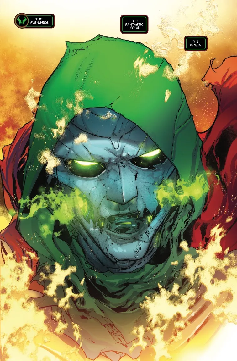 En un desesperado intento por derrotar a Muerte, Reed Richards descubre el secreto de cómo alcanzó la dominación mundial. ¿Será suficiente para que la gente le dé la espalda? ¿Y qué es lo que Muerte ha estado ocultando en el domo de Latveria? Todo será revelado, a un precio terrible.