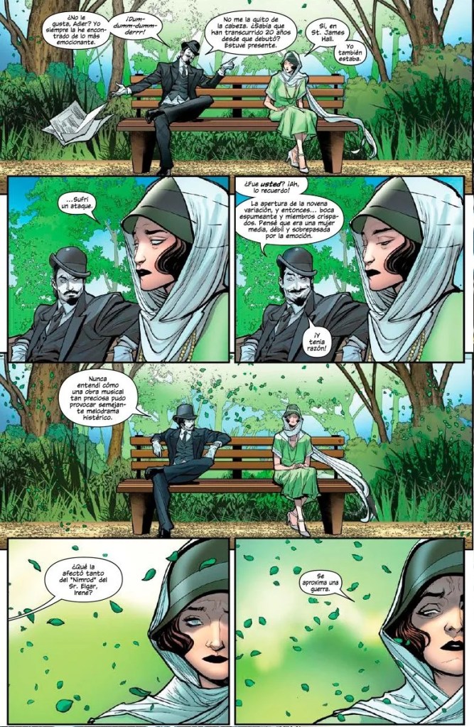 Y a pesar de todo lo anterior, llego a este primer número de Inmortal Patrulla X con ganas que Kieron Gillen me sorprenda con el nuevo relanzamiento mutante, sobre todo teniendo en cuenta que sus comics Die o Once and Future me han gustado bastante. Lamentablemente, este comic me ha recordado los motivos por los que no me interesa nada lo que el escritor inglés nos ofrece en el ámbito mainstream. Y no puedo decir que Gillen sea mal escritor, pero si que los temas que toca y la forma en los que los cuenta no me interesan nada en absoluto. Empezando por un comic que tiene a Mr. Siniestro de narrador que anuncia una serie centrada en las intrigas palaciegas alrededor del Consejo Silencioso de Krakoa. Nada de lo que he visto me ha interesado, pero ver a Emma Frost echando en cara no se qué a Magneto me ha dado verdadero asco, como si ella fuera la guardiana de no se qué moral krakoana, teniendo en cuenta que ella fue la verdadera villana de Inferno.