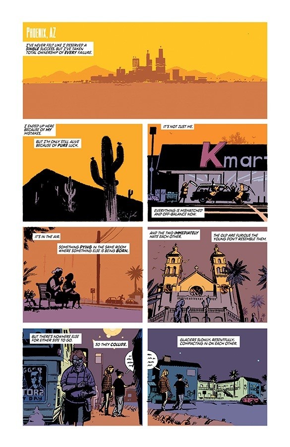 Leí este comic casi a la vez que el especial 80 páginas de Geiger de Geoff Johns, Gary Frank, Bryan Hitch y otros, y mientras Johns plantea un mundo en el que la sociedad se fue al garete y los Estados Unidos son un páramo nuclear, uniéndose a la moda imperante desde hace años en el entretenimiento, Remender toma partido de la forma más valiente posible, no riendiéndose y recalcando que es responsabilidad de todos creer que un futuro es mejor, y luchar por ello. Incluso aunque los medios y las asociaciones interesadas te venden la idea que la «Emergencia» es inevitable. No, no lo es, y eso es lo bonito de este comic, cuyo final me parece brillante.
