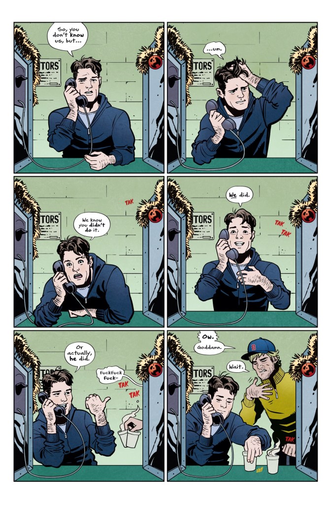 En lo referido al apartado artístico, me han gustado el dibujante Ryan Howe y el colorista Dee Cunniffe. Howe tiene un lápiz claro centrado en la expresión de los personajes, y realiza un buen retrato de unos protagonistas veteranos que han sufrido heridas físicas y psicológicas. Como comentaba antes, este primer número es super pausado y no puedo analizar su narrativa en escenas de acción, pero psicológicamente construye a unos buenos personajes y que pueden dar mucho jugo.