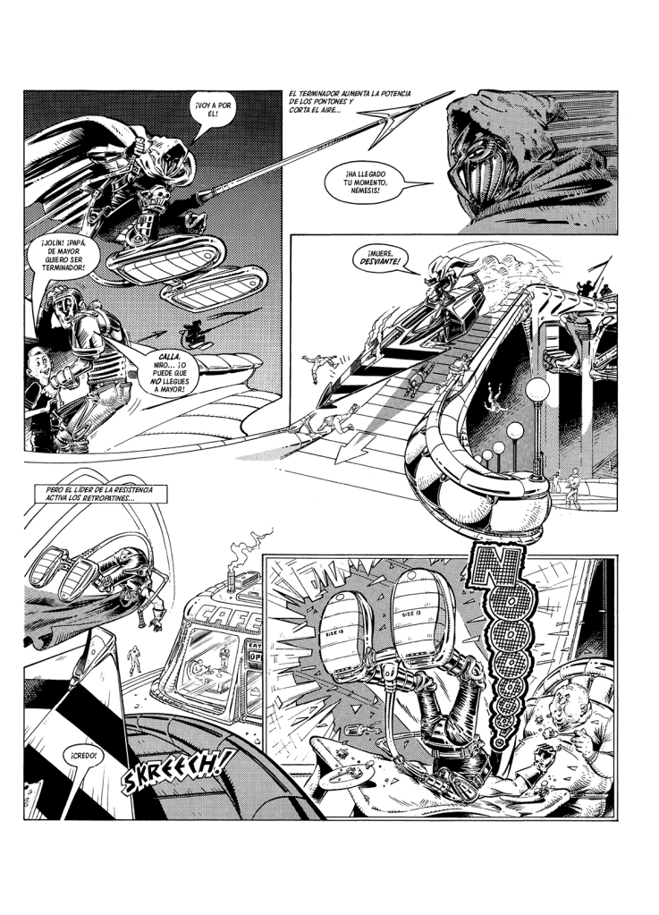 Y como ya me pasó leyendo el primer volumen, no podía evitar pensar mientras leía este volumen lo «viejunos» que se sienten estos comics de 1983-1985, pensando que esos mismo años en Estados Unidos se estaban publicando comics como la Patrulla-X de Claremont y Byrne, Daredevil de Frank Miller o los Jóvenes Titanes de Wolfman y Pérez. Entendiendo que son comics totalmente diferentes, Nemesis pierde por goleada en todos los casos. En todo caso, mi lado completista me hizo comprar este comic y al menos agradezco leer algo que es tan diferente a todo. Aunque sea algo con lo que nunca he llegado a conectar del todo.