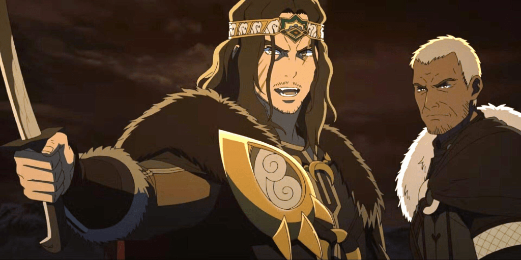 La película empieza con un gran paisaje que parecía una imagen real, con un nivel de detalle alucinante. Y cuando llegamos a Edoras, se puede apreciar el detalle de cada una de las decoraciones de los muros y las columnas del gran salón del trono. Y todo eso está super bien. Pero cuando llegamos a los personajes, dentro que Héra es super guapa y se resalta su naturaleza indómita, los personajes se mueven de forma rara, como si el anime tuviera un número de frames inferior al normal para abaratar. Por ejemplo, una de las primeras escenas, en la que Freca, el padre de Wulf, se dirige al Rey Helm Hammerhand, me sacó de la película porque hacen que Freca se moviera de forma nada natural. El resultado es una película con unos personajes que lucen pobres en pantalla y que NO luce espectacular cuando la historia daba para ello, y se le roba toda la épica que debería haber tenido.