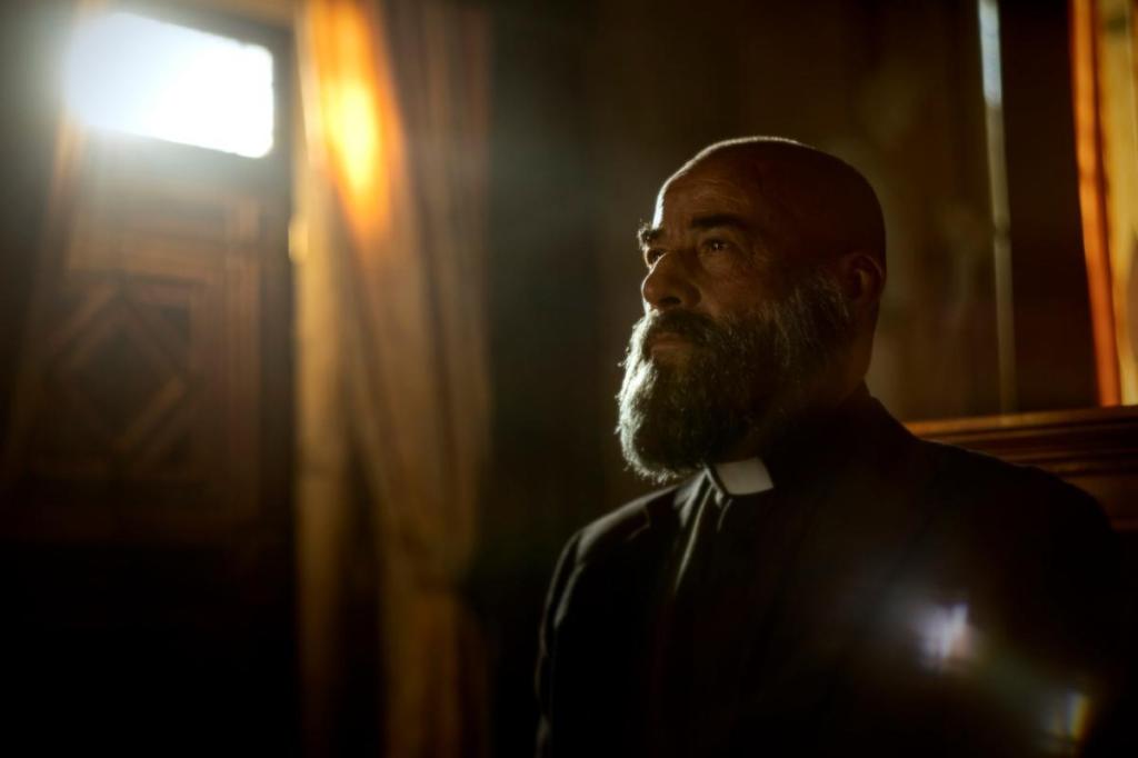 El único que puede estar contento con 30 monedas al 100% es Eduard Fernández. El Padre Vergara es otro personaje surgido de una barra de bar: “¿te imaginas lo que molaría ver a un cura boxeador que combate al demonio a tiro limpio?” Y hay que reconocer que el concepto “El exorcista meets El cabo del miedo meets Preacher” mola y ofrece algunos momentos visuales bestiales. La mera presencia de un Fernández musculado, tatuado, con cara de pocos amigos y barba tupida vende la serie, es cierto, pero el guión es también muy limitado en su construcción del personaje, que es mostrado con un único matiz y sin permitir un mínimo desafío actoral a Fernández, más allá de aparecer en pantalla con cara de pocos amigos.