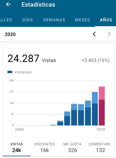 Y si 2019 fue una pasada, en 2020 estas cifras han saltado por los aires. Este artículo de aniversario es el artículo nº 217 que he publicado este año. Además, a final de Julio (en tan sólo 7 meses) ya había superado las visitas totales de 2020, confirmando que durante el COVID todos hemos estado más enganchados a internet de lo habitual y, espero, los contenidos que he ido publicando cada vez interesan a más gente.