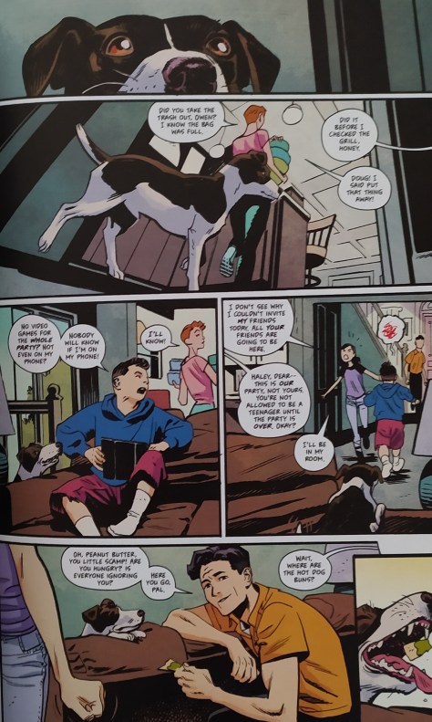 Soy un gran fan de Robert Kirkman y verle aportar su característica sensibilidad narrativa a una aventura de artes marciales con un toque sobrenatural ha sido muy divertido. Desde la construcción del mundo hasta su enfoque con las relaciones entre los personajes, a los que pone en el centro de la acción, se puede decir al leerlo que Fire Power es un comic 100% de Kirkman. Me gusta mucho ver como son las acciones los que definen a los personajes y no tanto tener que leer diálogos eternos para que los personajes nos digan cómo se sienten. Dicho esto, Kirkman equilibra perfectamente el ritmo del comic, contrastando las escenas de acción más bestias con otros más íntimos de la familia Johnson.