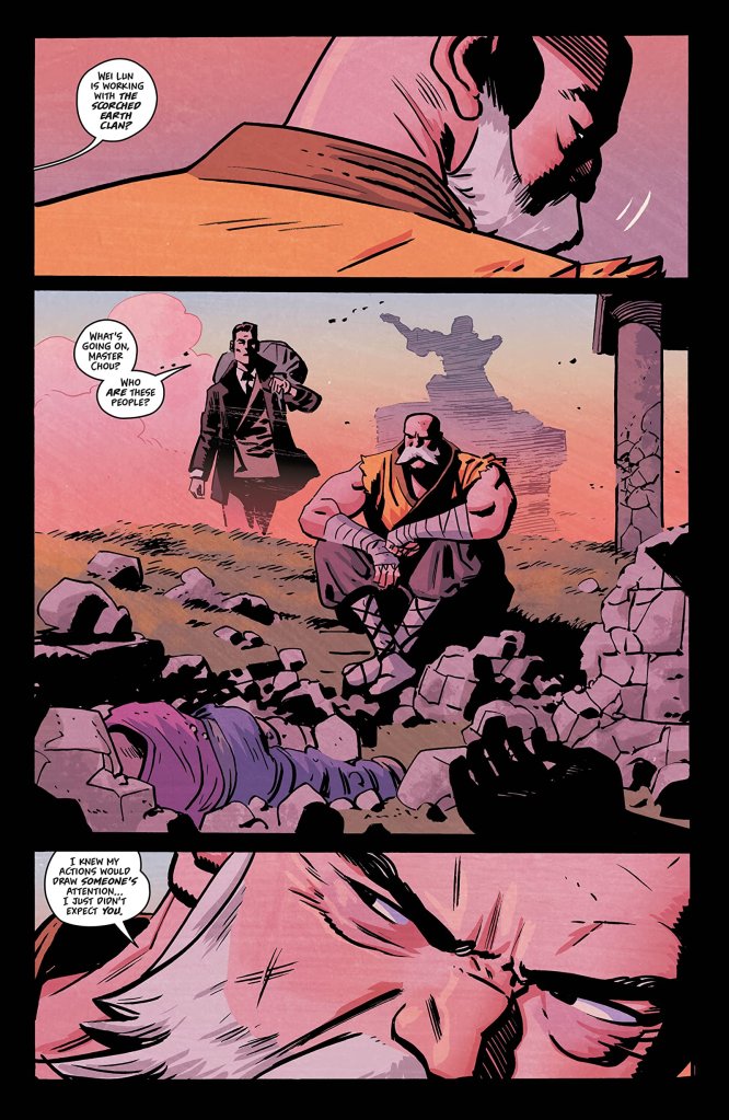 Y es curioso, porque si Fire Power es un comic 100% de Kirkman, también es una colección definida por el increíble dibujo de Chris Samnee, acompañado de forma perfecta por Matt Wilson en el color. De hecho, si Fire Power es el éxito arrollador que es es sin duda gracias a un Samnee en estado de gracias. El combate final de Owen Johnson, su familia y el resto de maestros de las artes marciales de los clanes Flaming Fist y Scorched Earth contra el maestro Shaw y el dragón que está asolando el mundo está lleno de momentazos visuales y de una emoción increíble gracias a la potencia visual de Samnee, que tiene además la virtud de dibujar las escenas siempre desde el plano perfecto que hace que la acción se vea de la forma más clara y nítida posible.