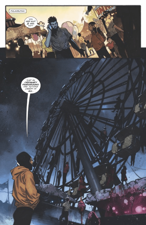 Pero no todo es culpa del dibujo. Algo ha pasado durante la producción de esta miniserie que ha arruinado la colección. Cuando salió el quinto volumen Millar informó a los lectores que el final de Jupiter´s Legacy se iba a contar en 12 números, de los cuales Requiem eran los primeros 6 números. Sin embargo, este Finale es una miniserie de 5 números. ¿Qué ha pasado para eliminar una grapa? Me parece extraño. Incluso podría imaginar que puestos a solucionar los problemas del dibujo de Edwards contratando a Matthew Dow Smith y a Lee Carter, cambiara el final para ajustarlo a menos páginas que las que había anunciado, para terminar lo antes posible.