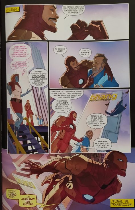 La verdad es que este último número me ha gustado, aunque todo él es un enorme WTF!! Según como lo aceptes vas a poder disfrutar más o menos este comic y con ello, la valoración de esta historia. Entiendo que todo ha estado bien planificado y se ha movido por los parámetros que Slott y Gage han desarrollado. Pero globalmente este comic y en general todo el Iron Man 2020 me ha acabado resultando entretenido pero irrelevante e intrascendente.