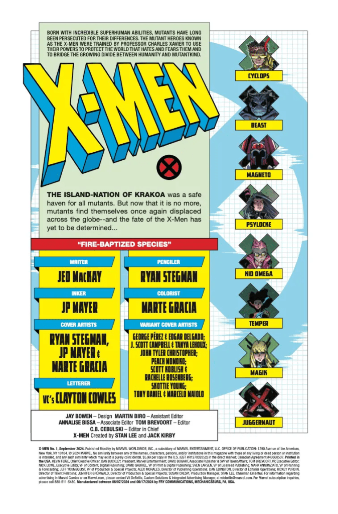 Krakoa ya no está, ORCHIS ha caído… pero los X-Men permanecen, siempre. Cíclope lidera, porque eso es lo que hace. Bestia construye, porque eso es lo que hace. Y desde su nuevo hogar en Alaska, los X-Men levantan una bandera de desafío. El negocio mutante es su negocio. Únete a CYCLOPS, BEAST, MAGNETO, PSYLOCKE, KID OMEGA, TEMPER, MAGIK y JUGGERNAUT mientras las nuevas fuerzas del mundo toman posiciones, luchando por el destino y la filosofía de la especie mutante.